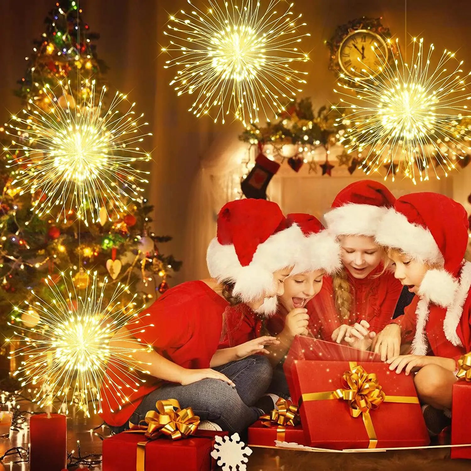 The unique and beautiful firework fairy lights look like an explosion ball or twinkle stars. They can bring a warm and romantic holiday atmosphere to any space and are suitable for indoor and outdoor use. Use your imagination and creativity to create a unique Christmas decoration.