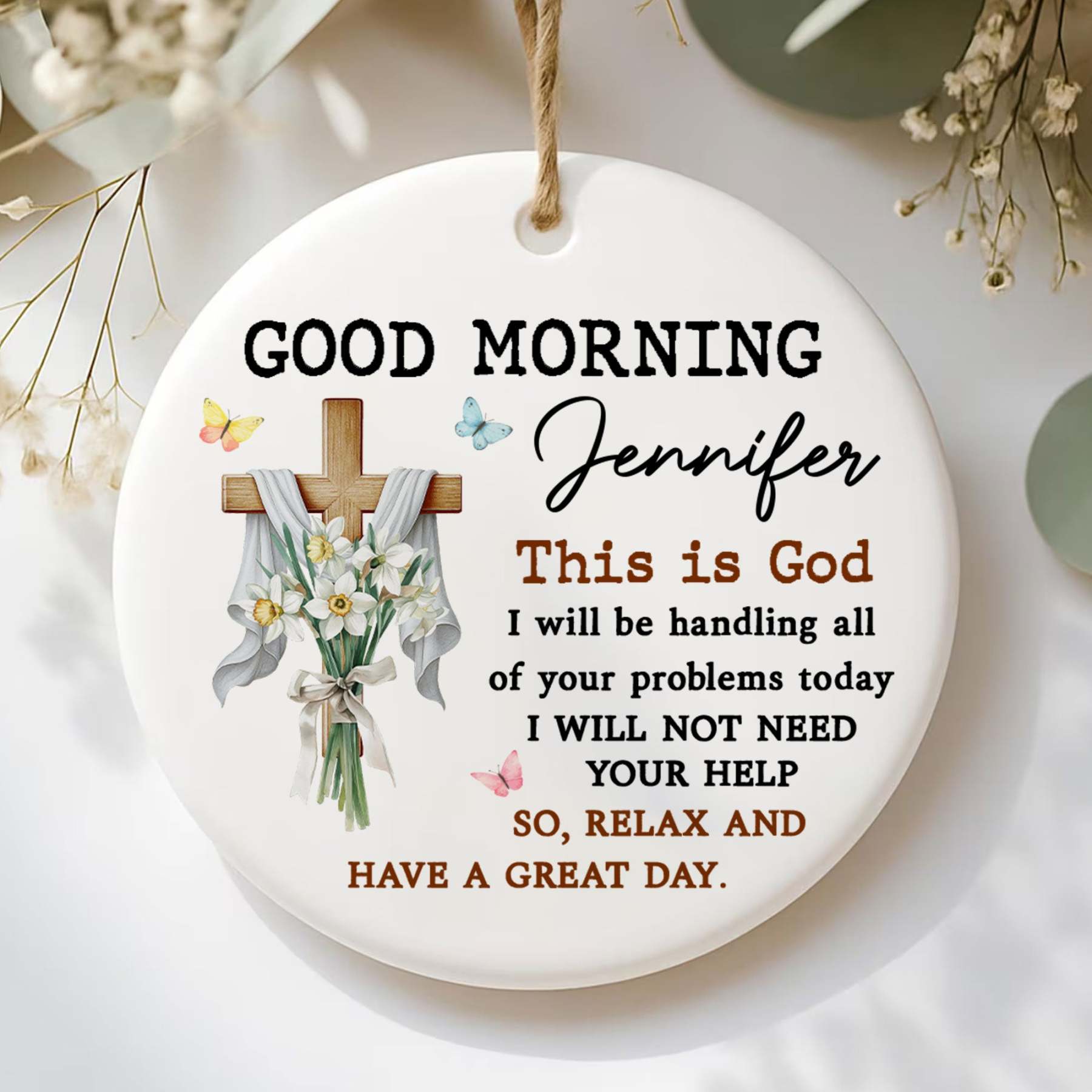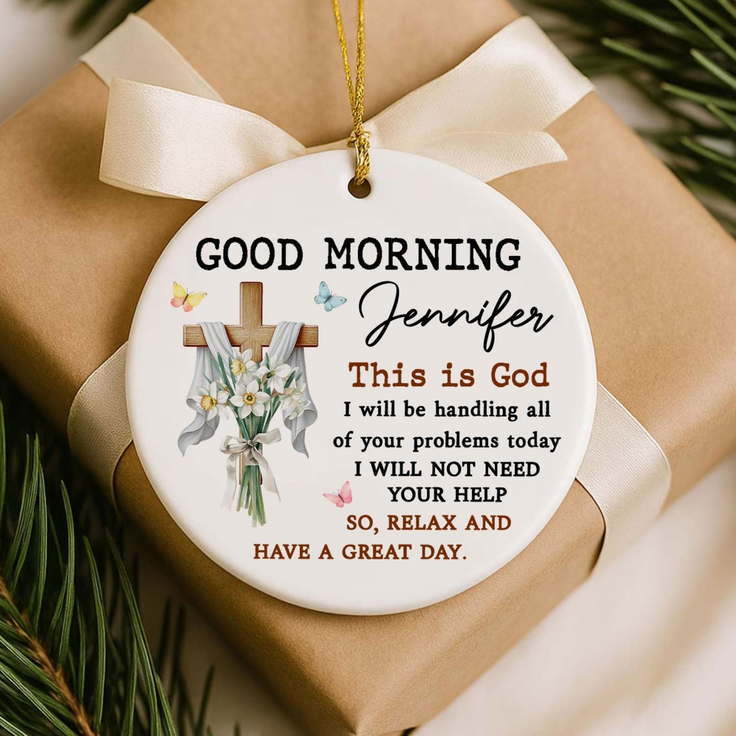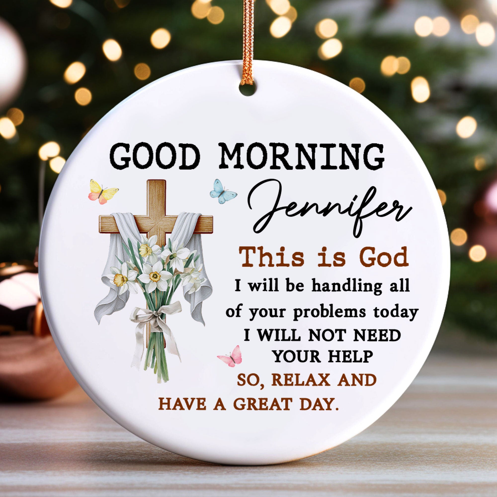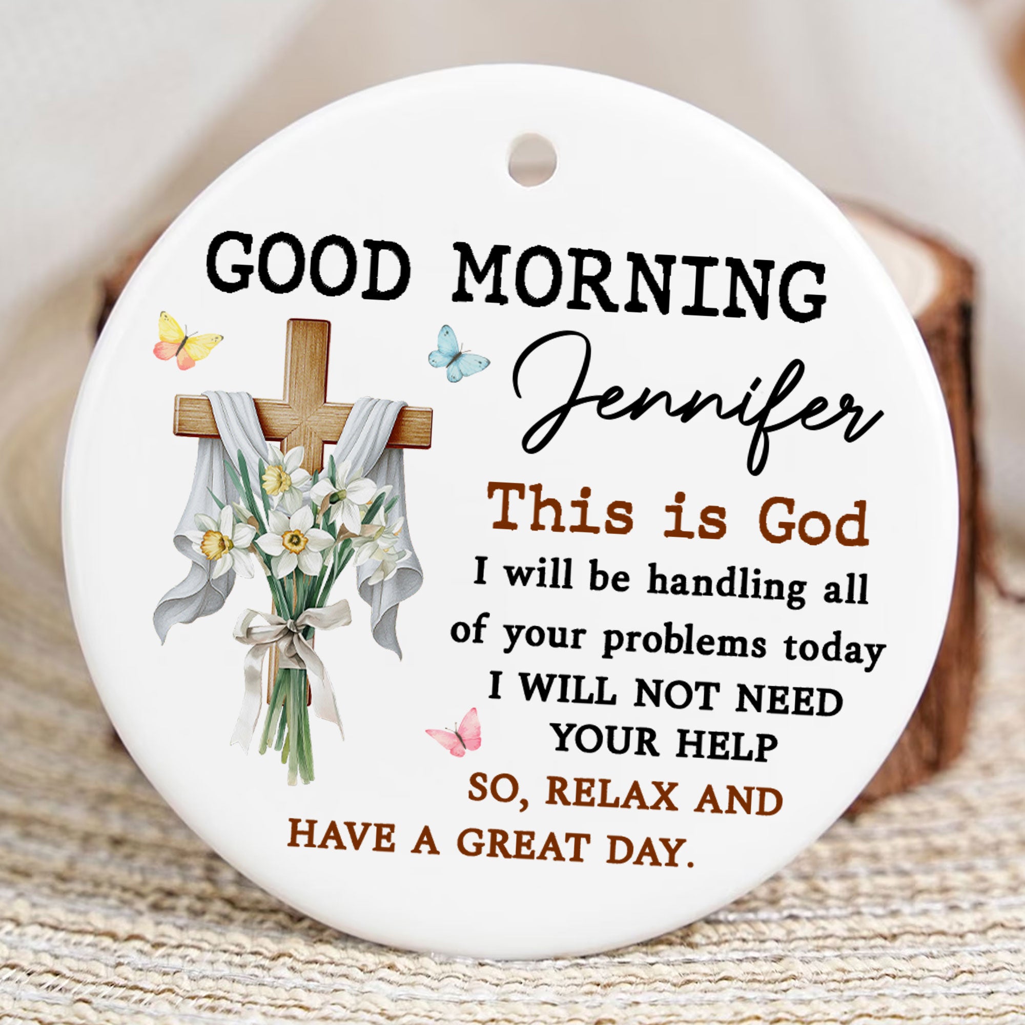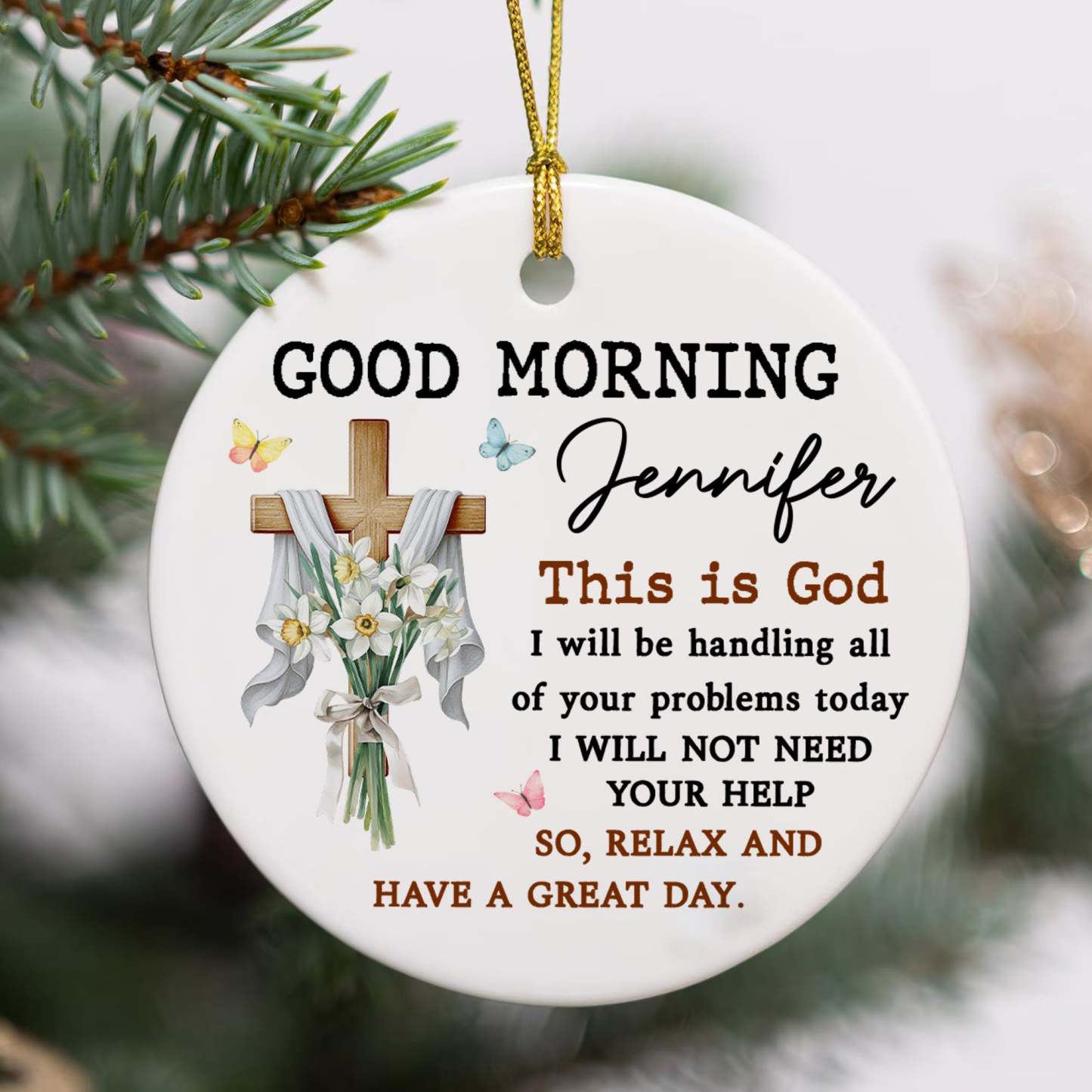 Good Morning This Is God Personalized Ceramic Ornament, Custom Name