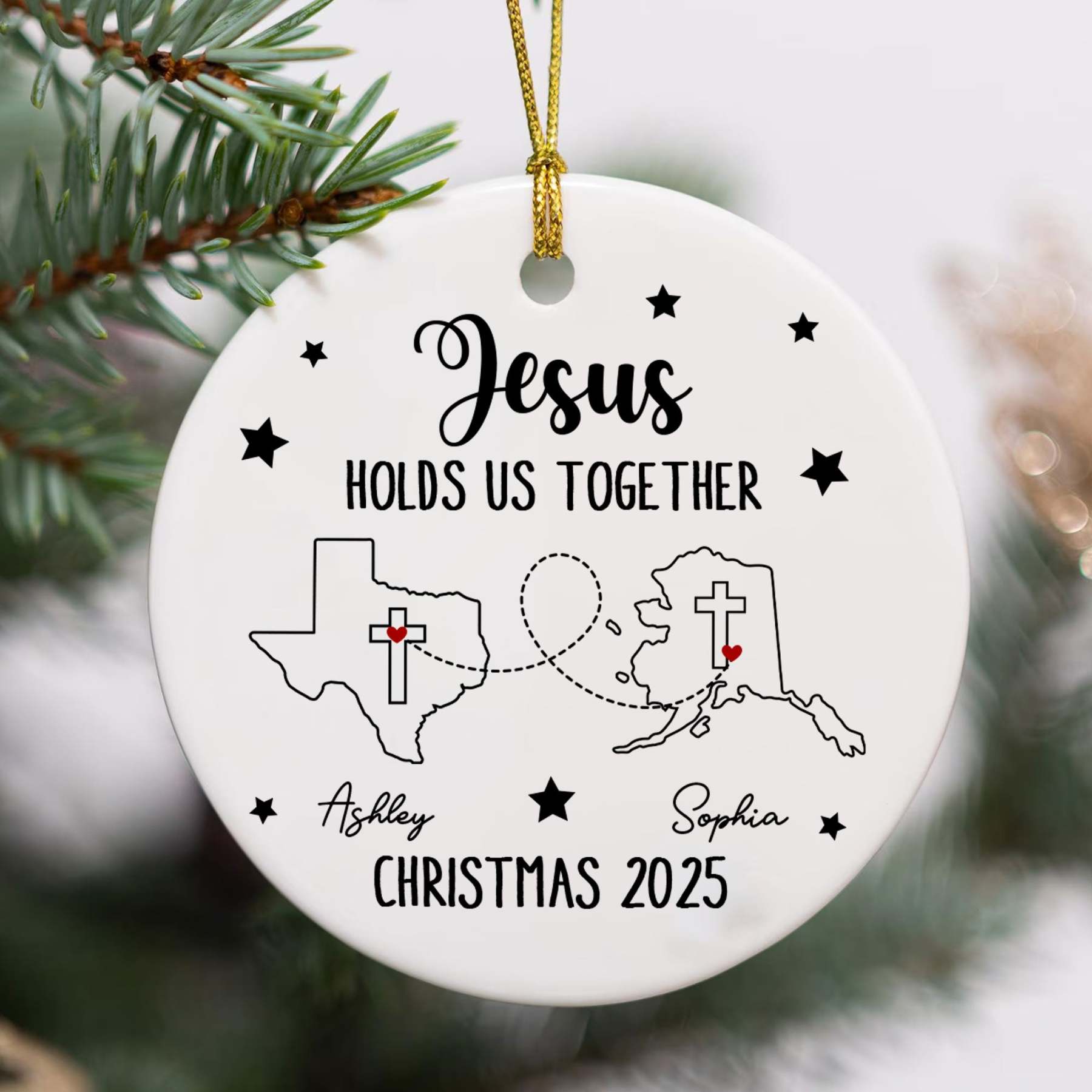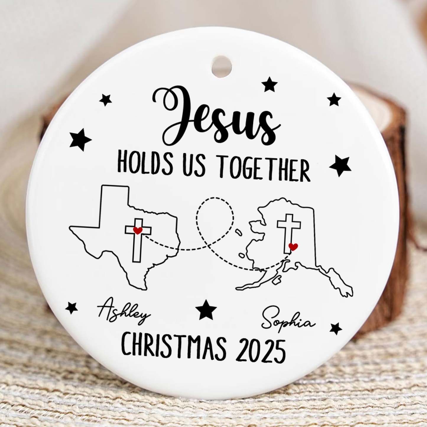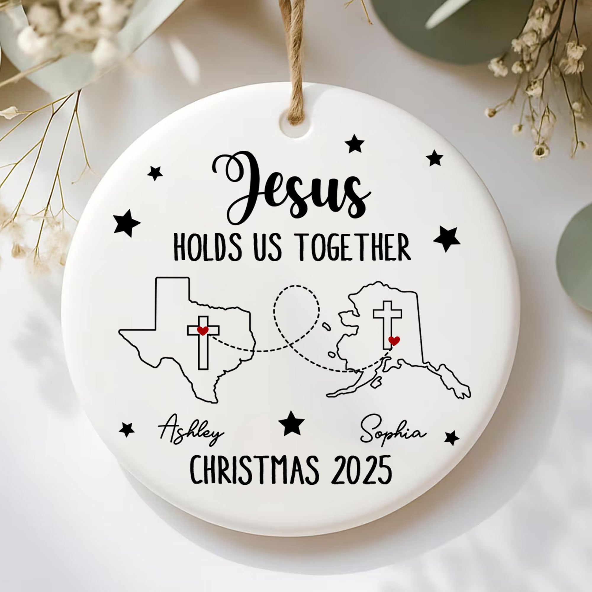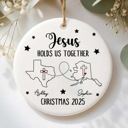 Jesus Holds Us Together Personalized Ceramic Ornament, Custom States, Custom Names, Custom Year