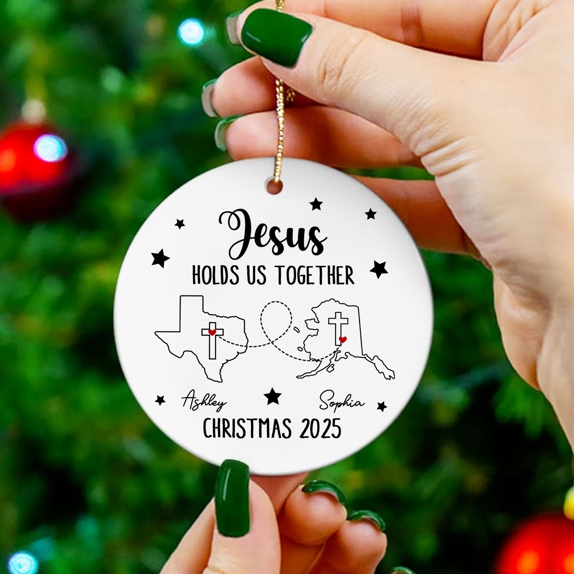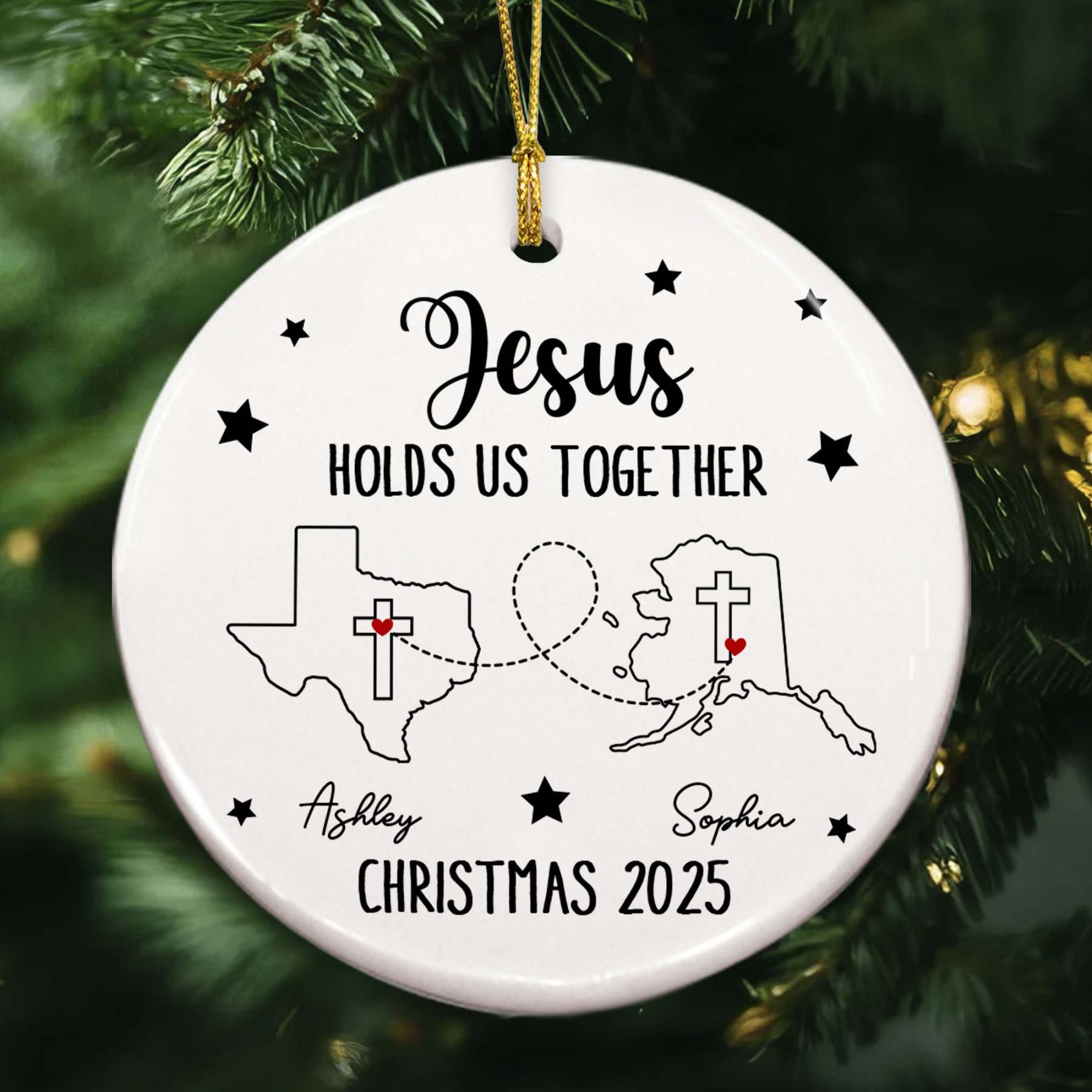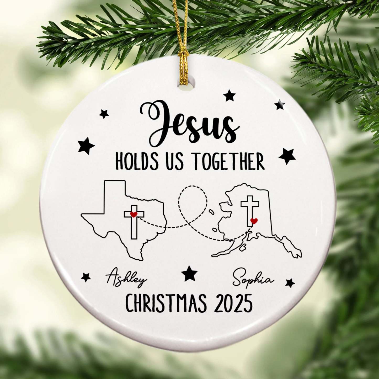 Jesus Holds Us Together Personalized Ceramic Ornament, Custom States, Custom Names, Custom Year