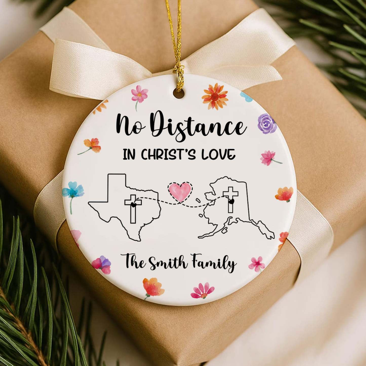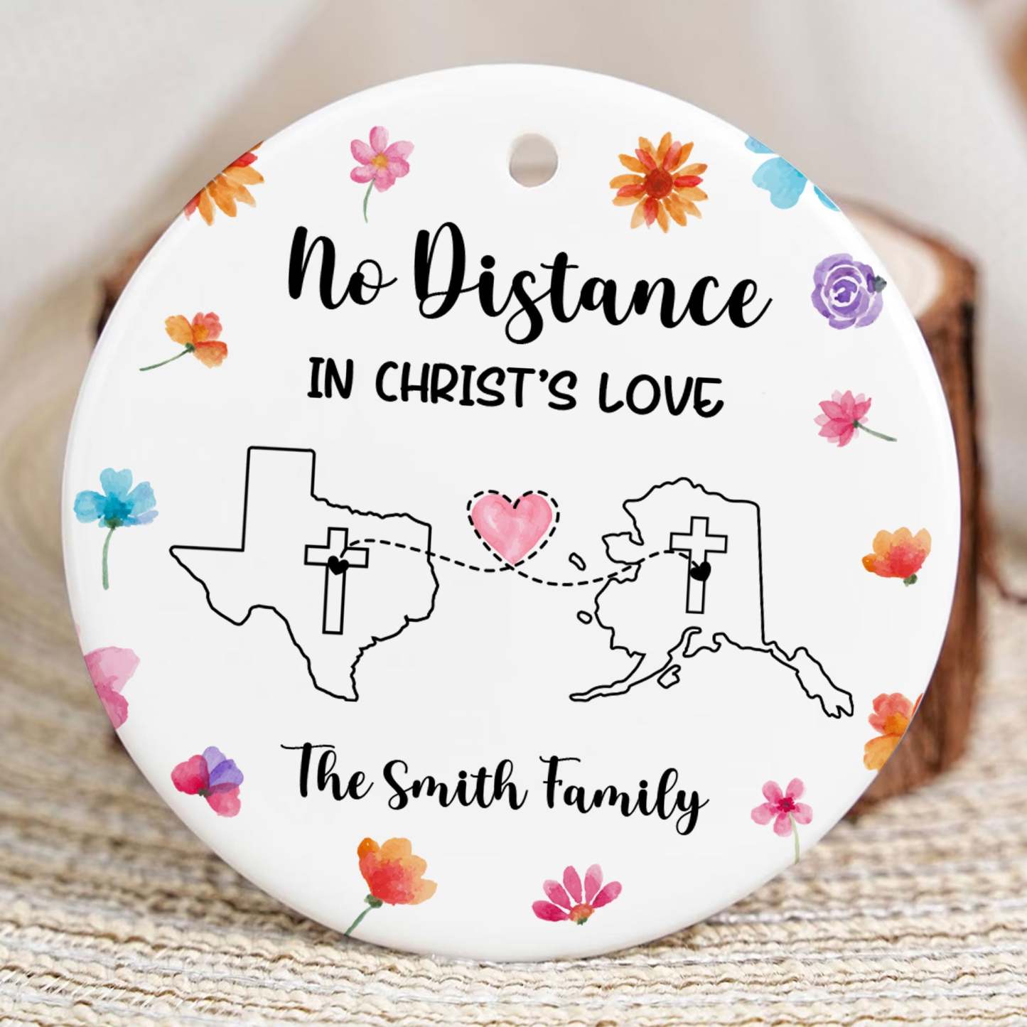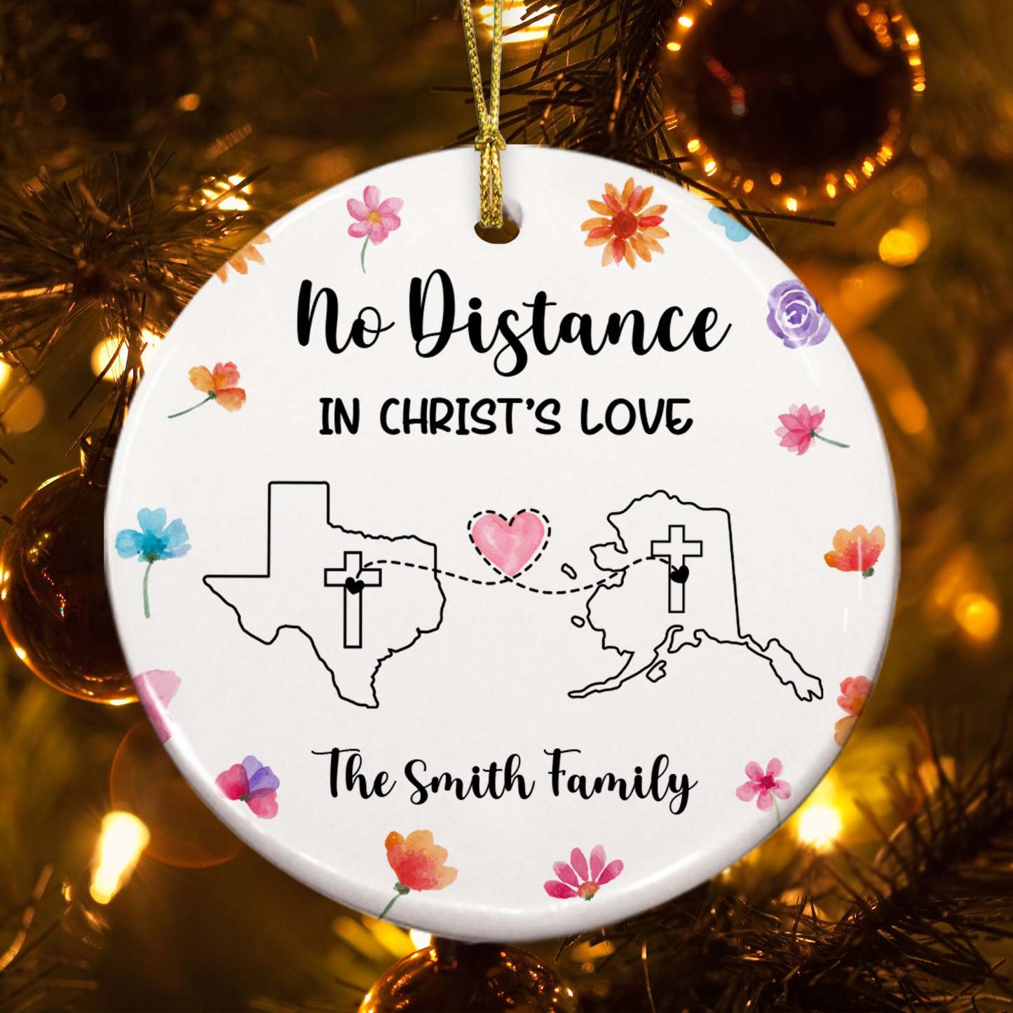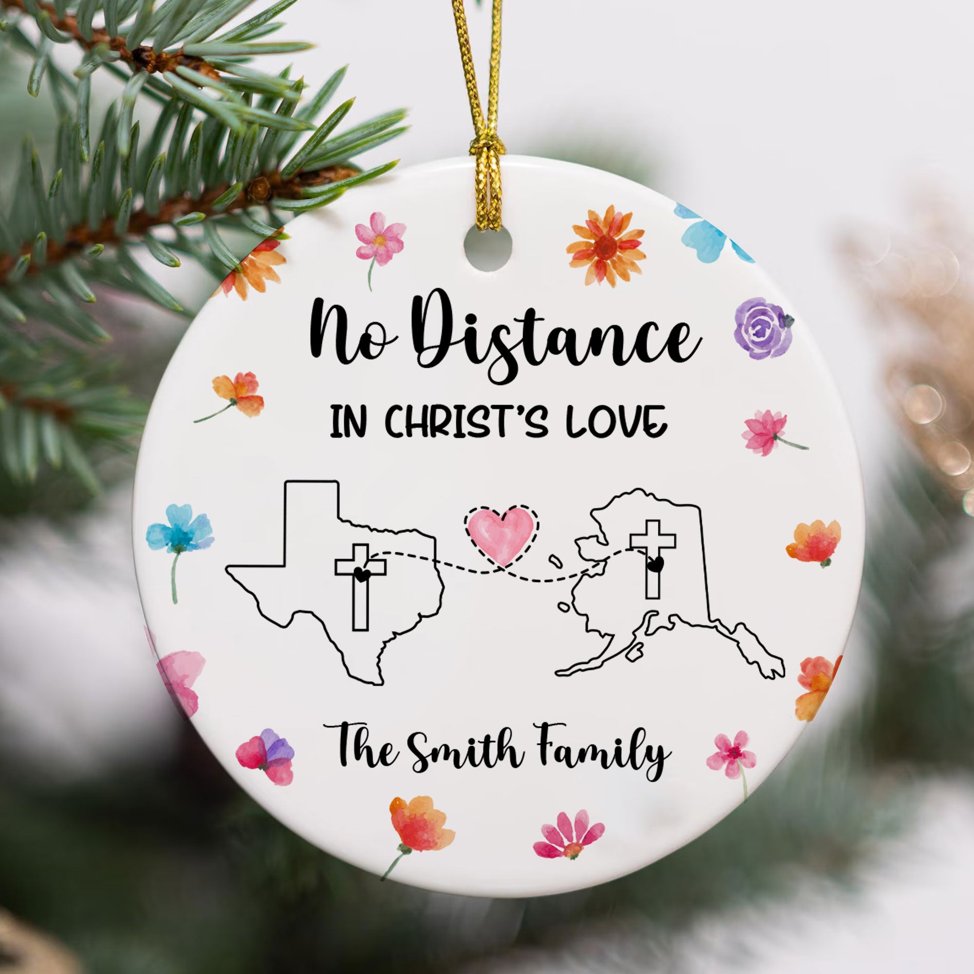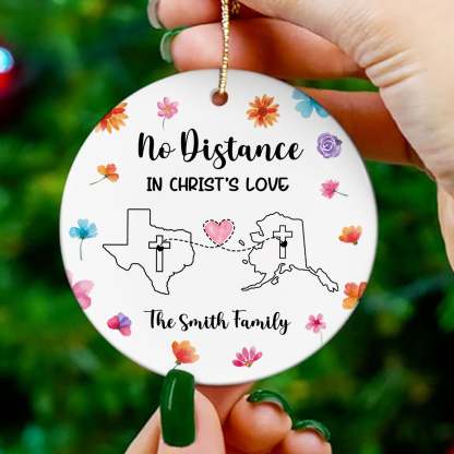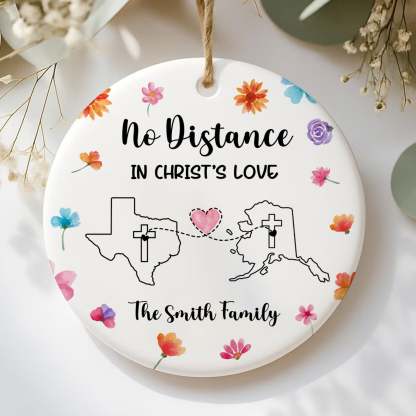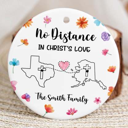No Distance In Christ's Love Personalized Ceramic Ornament, Custom Family Name